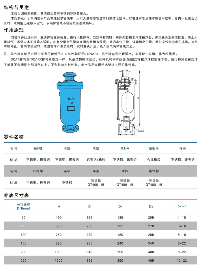 SCARX(WFKPQ42X)污水複合式(shì)排氣閥