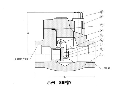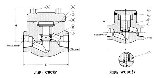 閥(fá)瓣可變換為節流(liú)型、針型、球型 四、升(shēng)降式鍛鋼止回閥(fá)【結構圖】