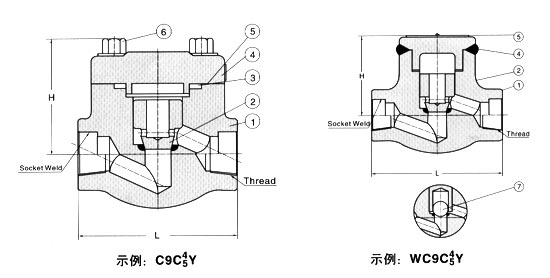 七、升降式鍛鋼止(zhi)回閥【結構圖】 900Lb~1500Lb