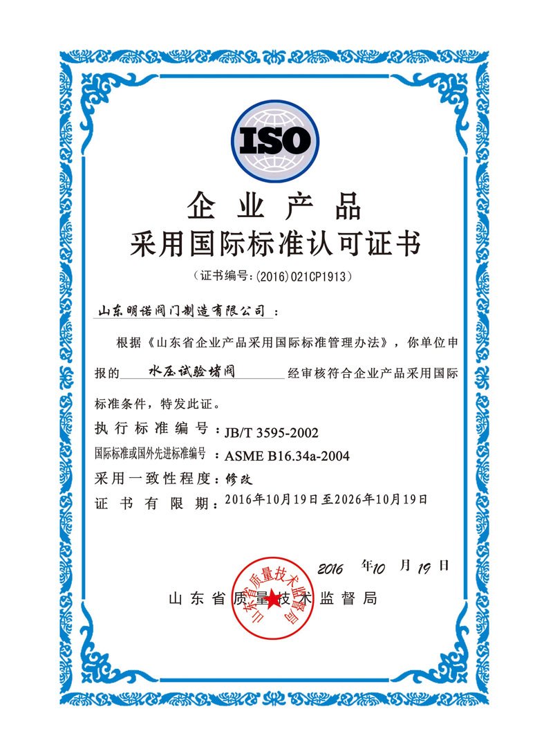 國際(ji)标準認可證書(shū)